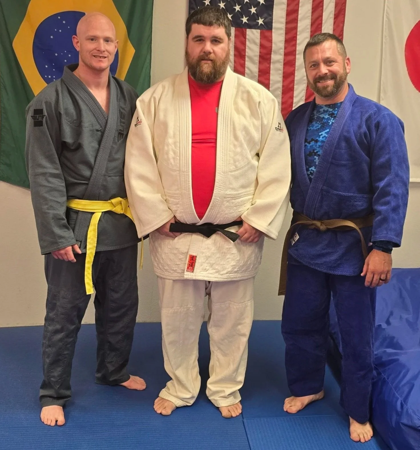 On October 8th, 2025, Connor Essery, an officer with the Des Moines Police Department, earned his first promotion, becoming gokyu and receiving his yellow belt.  Connor came to judo from a background in Brazillian Jujitsu, where he is a third stripe white belt (equivalent to a judo green belt in their ability with newaza).  Connor’s interest in understanding the roots and origins of BJJ, and in developing his upright game, led him to begin studying Judo.